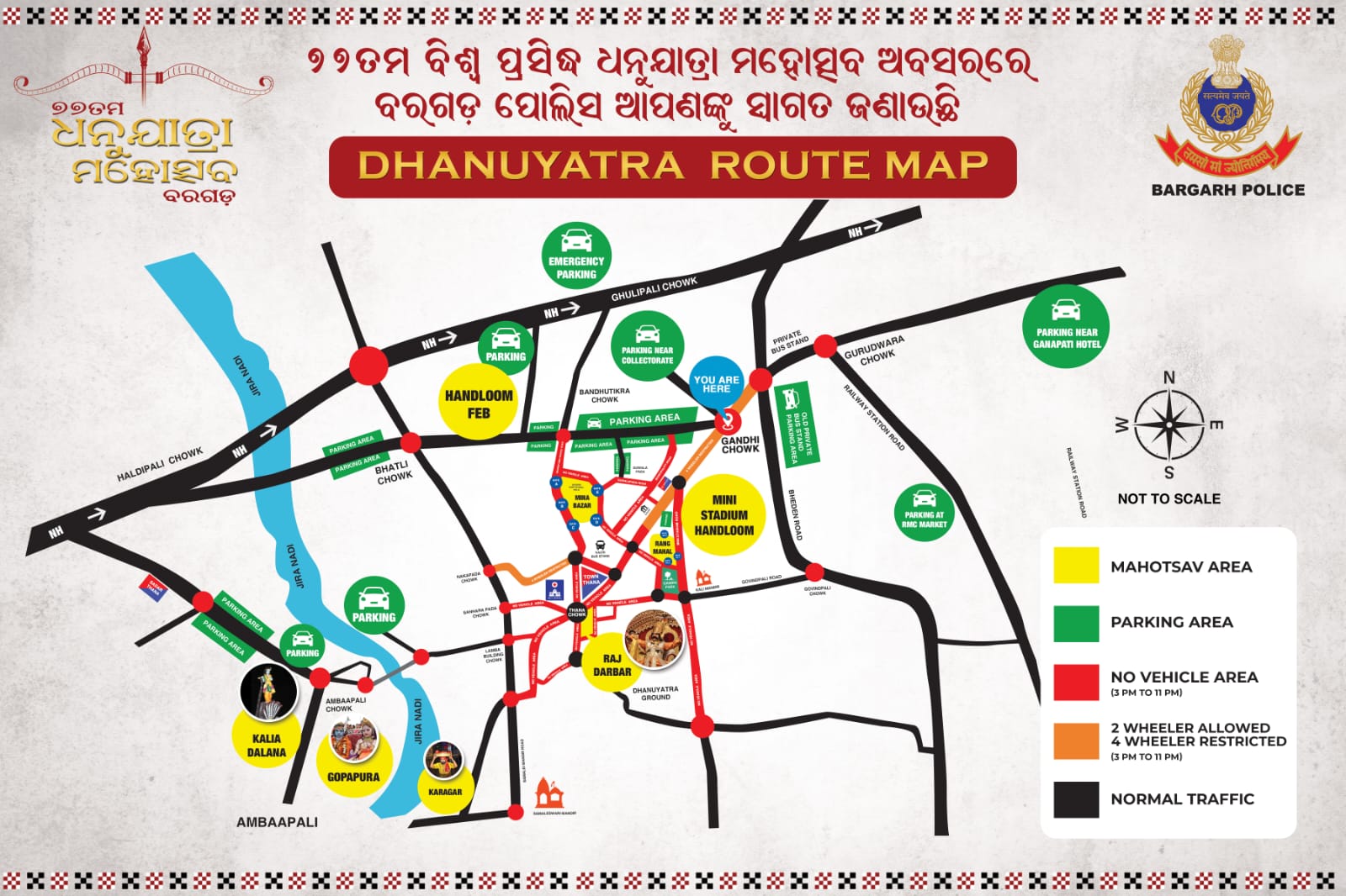 Every year, the festival is celebrated for 11 days, starting from the auspicious occasion of Paush Purnima. The major attraction of Dhanujatra is the dramatization of the story of Kansa, the tyrant king of Mathura, and his eventual downfall at the hands of Lord Krishna. The town of Bargarh transforms into Mathura, the Jeera River becomes Jamuna, and nearby villages like Amapali represent Gopapura. These geographical elements are intricately woven into the narrative, creating an immersive experience for all participants.